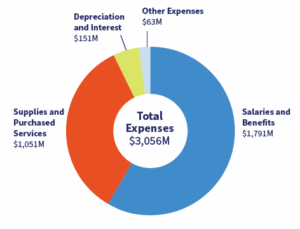 50% of hospital patient service revenue in our System comes from Medicare and Medicaid. This is a result of the large volume of services being reimbursed by Medicare and Medicaid, which do not cover the cost of care, driving significant underpayment from these public insurance programs.