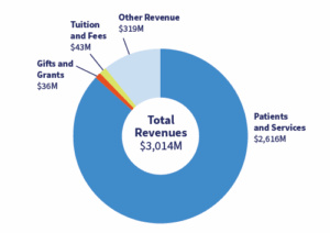 Patient care—service revenues, hospital charges, and physician billing—provides the majority of revenue for the Albany Med Health System. Our income is intricately tied to our mission, and as a nonprofit all revenue gets reinvested back into the System, supporting our talent and enhancing patient care.