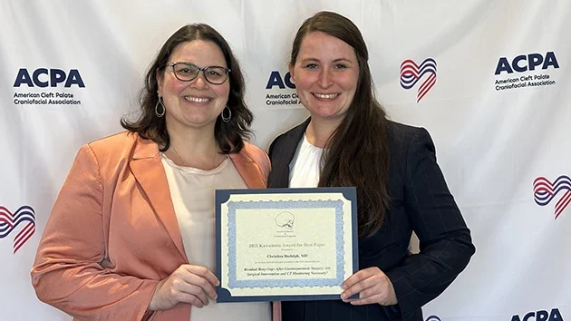 Christina Rudolph, MD ’19, chief resident of plastic surgery, received the prestigious Kawamoto Award for Best Paper from the American Society of Craniofacial Surgeons for her podium presentation at the American Cleft Palate Craniofacial Association’s annual meeting, the first time Albany Medical Center has been recognized with the award.