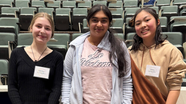 After three rounds in which students were quizzed on their knowledge about the brain, Bhuvika Kodali of Shenendehowa High School, Evelyn Lu of Shaker High School, and Ryder Clarson of Emma Willard School were tied.