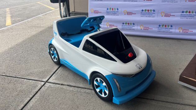 A child-sized vehicle specifically designed for hospitals was unveiled today at Albany Medical Center. The Capital Region and North Country Honda Dealers in partnership with American Honda’s Project Courage donated the vehicle to the Bernard & Millie Duker Children’s Hospital and Massry Family Children’s Emergency Center, which is intended to transport pediatric patients to tests, scans, and procedures. The vehicle, called Shogo, is designed and developed by Honda engineers to bring comfort and joy to patients. Albany Medical Center is the first hospital in New York State to receive a Shogo.