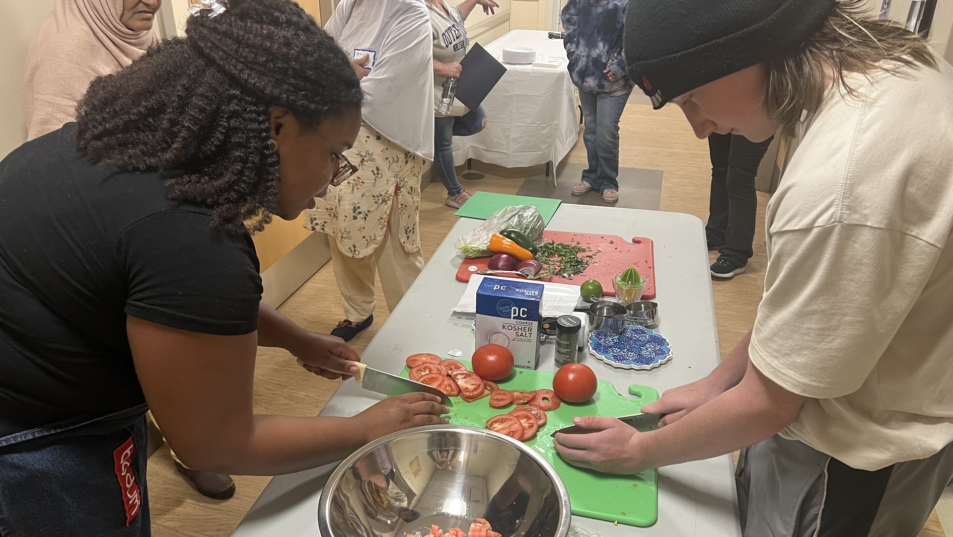 Hosted once a month, the cooking class is led by Jones, with culinary expertise from Dr. Chaudhari, and assistance from three Albany Medical College students who are part of the Cooking Healthy Options with Patients (CHOP) Service Learning program; Ta’Nae Harrod, Alexis Robert, and Pamela Sylvestre.