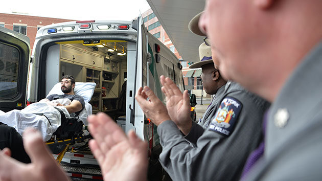 When it came time for his discharge to a rehabilitation facility, hospital staff and State Troopers lined the halls from his room all the way to the hospital entrance at New Scotland and Myrtle avenues, applauding him and his recovery. It was a powerful, emotional show of support.