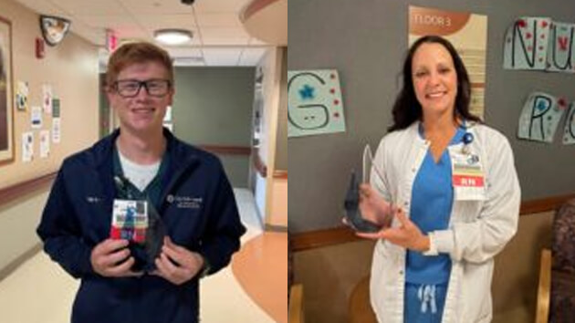 Adam Gray, RN and Michelle Richards, RN were recently recognized with the Nurse Resident of the Year 2022 award. This honor is given to a nurse from our Nurse Residency Program who focuses on providing patient-centered care, functions effectively within the interdisciplinary team, and integrates evidence-based practice to deliver optimal care. Adam and Michelle practice on Tower 6 and Tower 3, respectively, and both have excelled in their clinical skills and promotion of teamwork on their units.