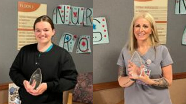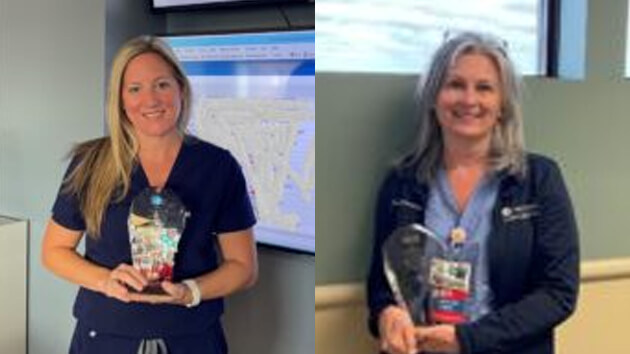 Amanda Wing, BSN, RN, and Nicole Krause, MSN, RN, NPD-BC, NE-BC, were recently recognized with the Nurse Leader of the Year 2022 award. This honor is given to a professional nurse in a leadership position that fosters and supports a culture of nursing excellence. The nurse collaborates with all levels of nursing staff, interdisciplinary teams, executive leaders, and other stakeholders to improve the patient experience. Amanda is the nurse manager of the Float Pool and Logistics, and Nicole is the nurse manager of the Post Anesthesia Care Unit. These leaders were nominated by their team for being caring, authentic, and advocating for the staff on the unit while promoting patient-centered care.