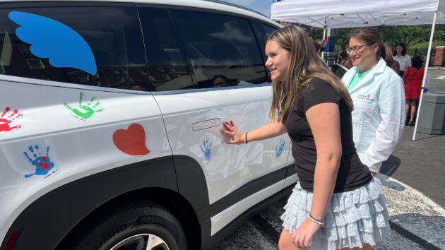 Following the check presentation, Melodies Center patients painted their hands and pressed their handprints on a Hyundai vehicle to commemorate the event and their brave battles with cancer. The Melodies Center treats more than 1,500 children each year with cancer and blood disorders.