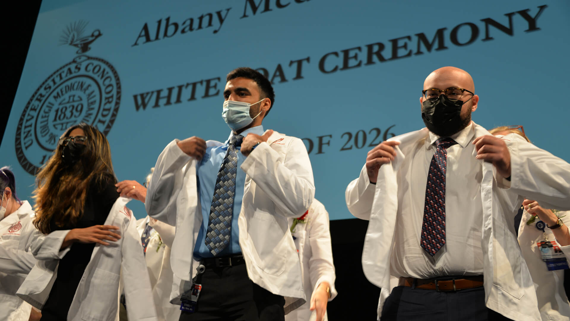 “The white coat ceremony is a time-honored tradition that reminds our students and faculty of the honor and privilege that comes with entering the medical profession, and the importance of seeing our patients as individuals whose needs are our highest priority,” said Alan S. Boulos, MD, ’94, dean of Albany Medical College. “As faculty, we look forward to working with this diverse and talented group of students and to helping each of them grow into compassionate, dedicated, and selfless physicians.”